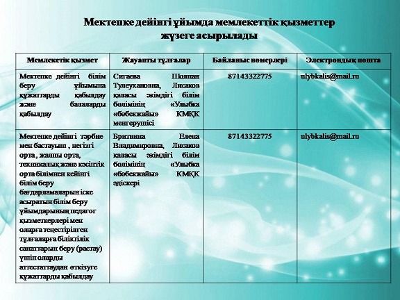 Мектепке дейінгі ұйымдарға құжаттардықа былдау және балалардықа былдау |